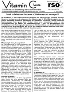 Beim Strategieprojekt „Charité 2030“ scheint gerade richtig was los zu sein: es kommt eine Intranetmeldung nach der anderen. Und was wird da so diskutiert? Hier ein paar Auszüge: „Eine unperfekte Gegenwart braucht einen Blick in die Zukunft“ – klingt ein bisschen wie im Mittelalter – unterm König wirst du ausgebeutet, aber dafür is et im Himmel besser. „Die Strategie muss zum Menschen kommen“ – wäre erstmal gut, wenn die Strategie unsere Streikforderung aufnimmt. „Die Strategie-Umsetzung als Staffel der Fernsehserie“ – da könnten sie auch unsere Streiks aufnehmen – wäre spannender. Und zum Schluss: „Typisch Charité – was ist das?“ – Überstunden, Burn-Out, Personalmangel, keine Pausen – aber zumindest jute Kolleg:innen.