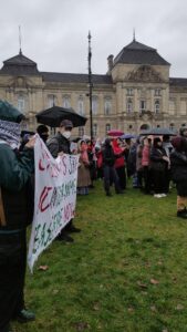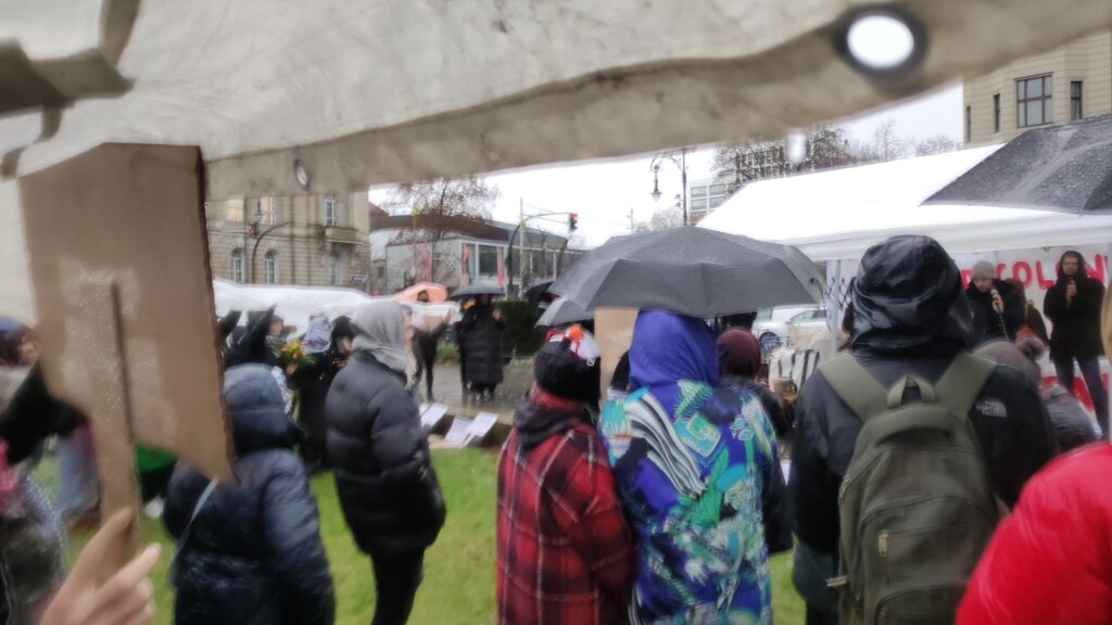Letzten Mittwoch, am 20. Dezember, haben rund 140 Leute vor der Berliner Universität der Künste in Solidarität mit den Palästinenser:innen demonstriert. Die Studis von allen großen Unis der Stadt hatten sich dort verabredet, um die Politik der Unis anzuprangern. Die Berliner akademische Chefetage hat sich seit Beginn des Kriegs gegen Gaza der politischen Linie von Kanzler Scholz angeschlossen und bleiben einseitig auf der Seite Israels. Bei der Freien Universität Berlin (FU) ist seit Beginn der Proteste mehrmals die Polizei in die Uni eingedrungen, um die solidarischen Töne mit der Bevölkerung von Gaza zum Schweigen zu bringen. Dafür haben die Studis „FU, shame on you!“ geschrien!