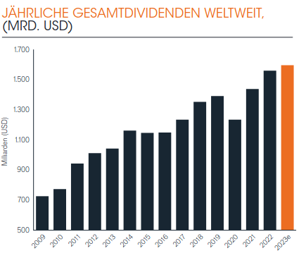 Großaktionäre, also Eigentümer großer Konzerne, werden auch dieses Jahr eine fette Sause veranstalten. Der große internationale Vermögensverwalter Janus Henderson hat seinen jährlichen „Global Dividend Index“ veröffentlicht und rechnet damit, dass Firmen weltweit 1,6 Billionen US-Dollar an Aktionäre ausschütten – das würde den 2022 erzielten Rekordwert von 1,56 Billionen Dollar noch einmal übertreffen.