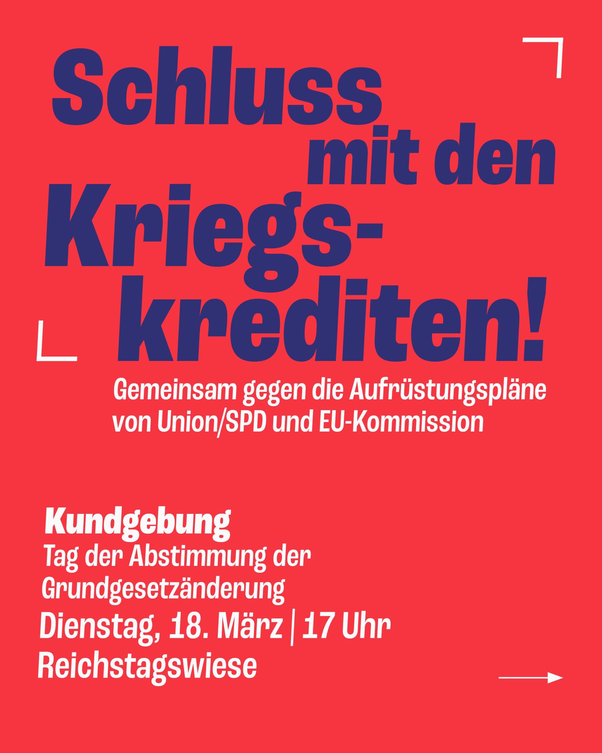 Stop the war credits! Together against the rearmament plans of CDU/CSU and SPD, and of the EU commission! // Schluss mit den Kriegskrediten! Gemeinsam gegen die Aufrüstungspläne von Union/SPD und EU-Kommission!
