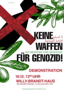 Kommt Sonntag in Berlin mit uns demonstrieren: Sonntag, 10. Dezember, 13 Uhr, Willy-Brandt-Haus (U Hallesches Tor): https://noweapons4genocide.wordpress.com/